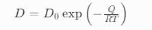 其中D為擴散系數,強烈依賴于溫度(通過Arrhenius方程描述):